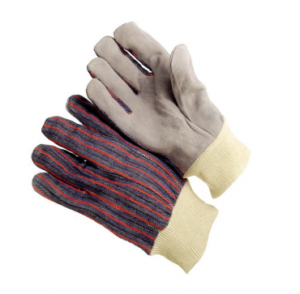 Stripe fabric back, lined palm, knit wrist, men’s size